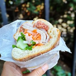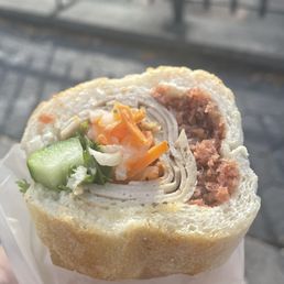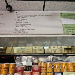 The best banh mi in Chinatown, although there are others that come as a close second. Fresh soft and crisp bread, thick slices of flavorful meat, with lots of veggies make for an excellent banh mi experience. And they're also open later than some of its competitors! I really have only good things to say. I was surprised this place hadn't popped up on my radar yet but when my cousin who used to come to Chinatown weekly recommended this place ot me I knew I had to come and check it out and boy was I glad she did. I was craving this banh mi in the next weeks and couldn't get to Chinatown so I settled for a different place and it just wasn't the same. Will need to come back. CASH ONLY! There is an ATM available. Also there's a fridge to the side with some drinks - I recommend a guava or lychee juice :)
